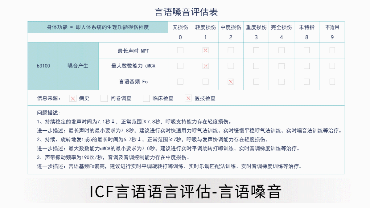 用于语言、发声治疗的实训课程,包括方案制定、示范、训练脚本。