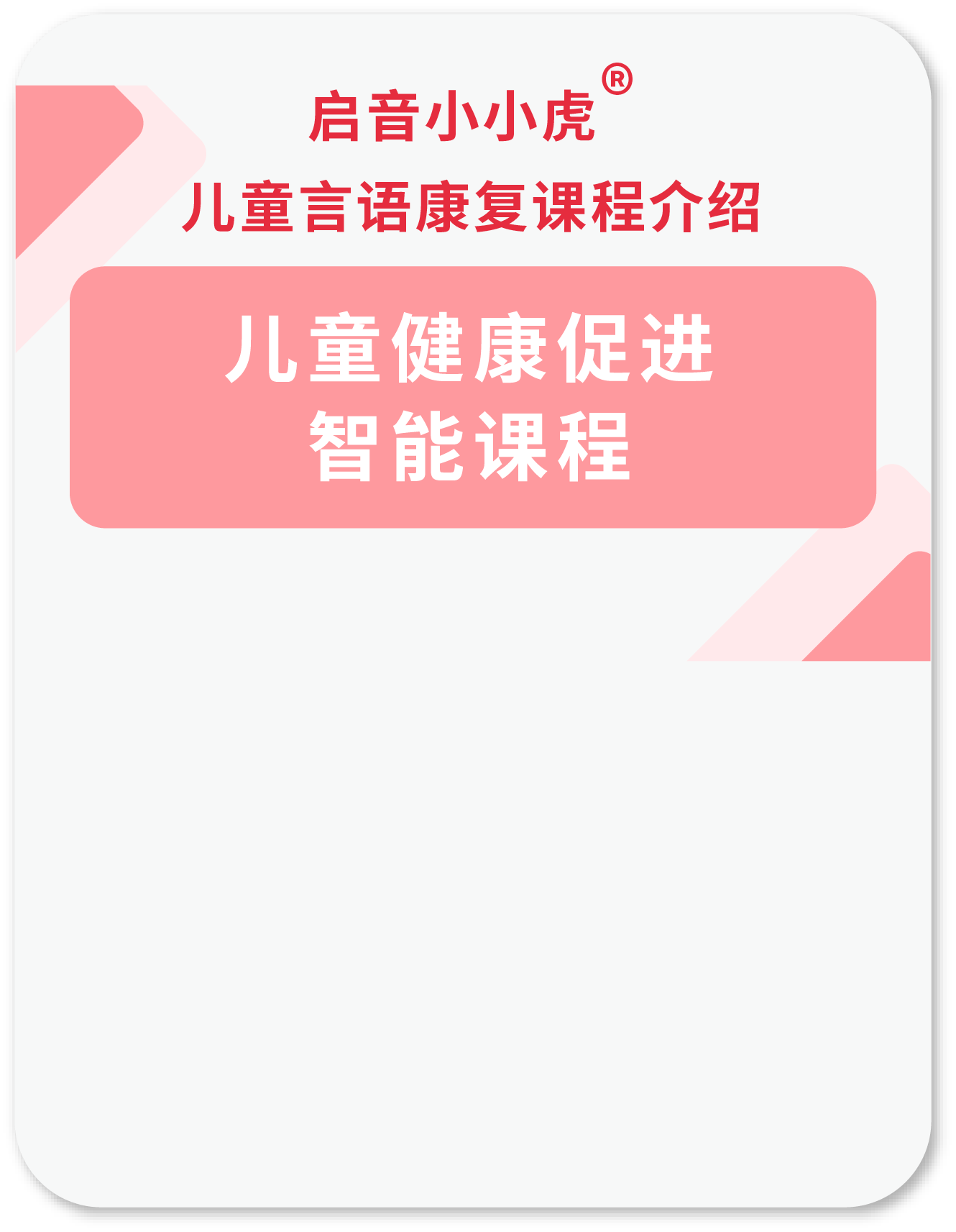 启音小小虎®基于互联网的“预约服务、在线咨询、综合检查、报告查询、训练计划、ICF质控与档案管理、远程诊疗服务“等一系列言语康复、语言健康精准服务,为用户构建本地一站式儿童康复健康服务平台。